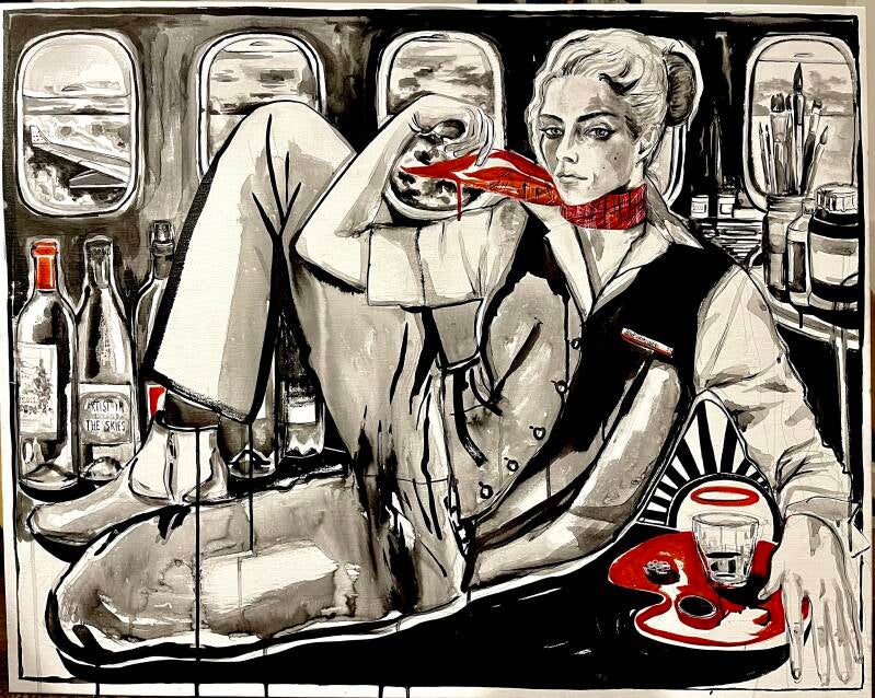 - Wat is het mooiste moment tijdens het creatieproces? Hoe voelt het om in dit proces te zitten? Het mooiste moment is denk ik als het werk ultiem tot z'n recht komt- ingekaderd is en ophangt. Tijdens het creatieproces is er meestal frustratie: je hebt een idee maar je moet vaak vechten om het idee op papier/doek te krijgen zoals je het oorspronkelijk voelde. Het moment waarop de frustratie stopt en je denkt dat je je oorspronkelijke gevoel hebt bereikt is denk ik het beste moment. Dat kan soms heel toevallig ontstaan- door het maken van een fout bvb.
