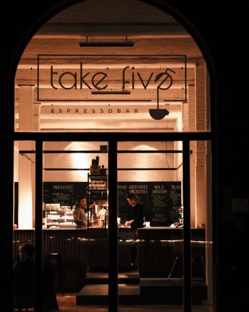 Take Five, Grote Huidevettershoek 10, 9000 Gent. in het weekend open van 9 tot 18 uur, in de week vanaf 8.30 uur. Voorlopig nog gesloten op dinsdag.